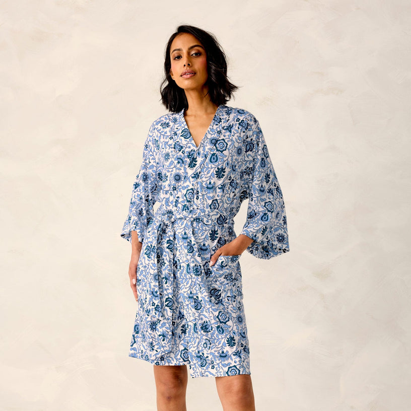 - Stretchy, lightweight printed jersey robe